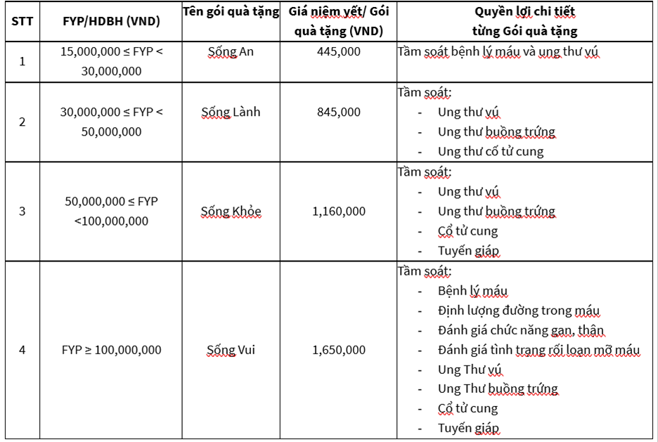 Không chỉ là giải pháp bảo vệ tài chính – sức khỏe toàn diện cho bản thân và gia đình, chương trình còn trao tặng những quà tặng thiết thực, giúp khách hàng thêm an tâm tận hưởng cuộc sống, chủ động chăm sóc sức khỏe và nuôi dưỡng hạnh phúc mỗi ngày.